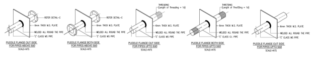 Galvanized Puddle Flange is our best selling products we supply it across a Mumbai, Navi Mumbai, Thane, Pune, Baroda & etc. Providing 450mm, 500mm, 550mm, 600 mm & 700mm long MS hot dip galvanized PUDDLE FLANGES fabricated out of 6 mm thick MS plate of suitable size and IS : 1239 & IS 3589 heavy class pipes make Jindal Tata properly fixed in walls & top slab of tanks. The entire fittings shall be hot dipped galvanized after fabrication.